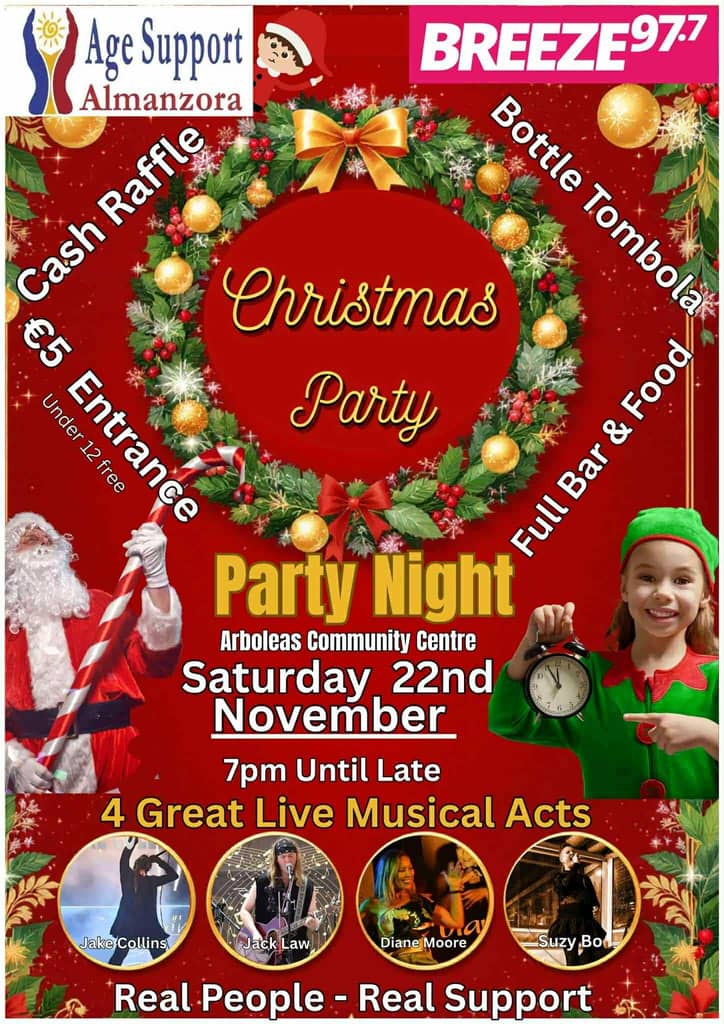 Arboleas Community Centre will host a 'Christmas Party' gig featuring 4 great acts: Jake, Jack, Diane and Suzy-Bo. Only 5€ entry and 'Age support Almanzora' will benefit.