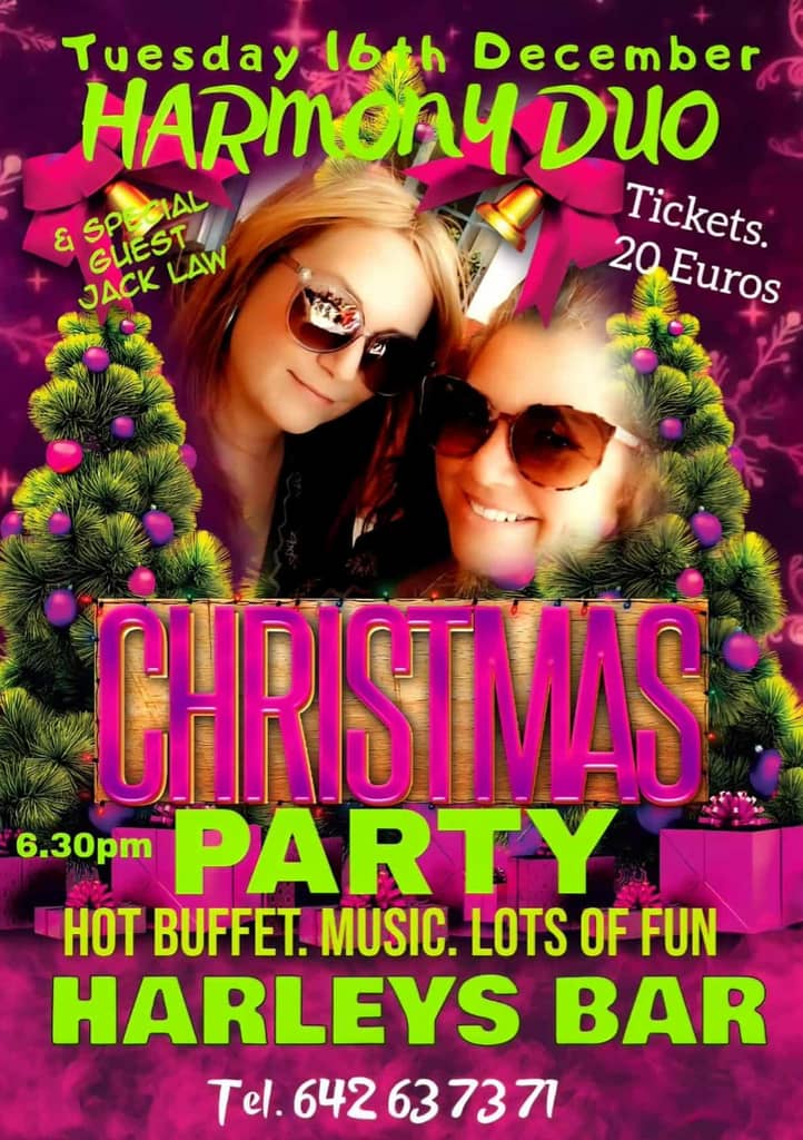 Harmony Duo Xmas Party, featuring special guest Jack Law. Tickets 20€. Info on poster: